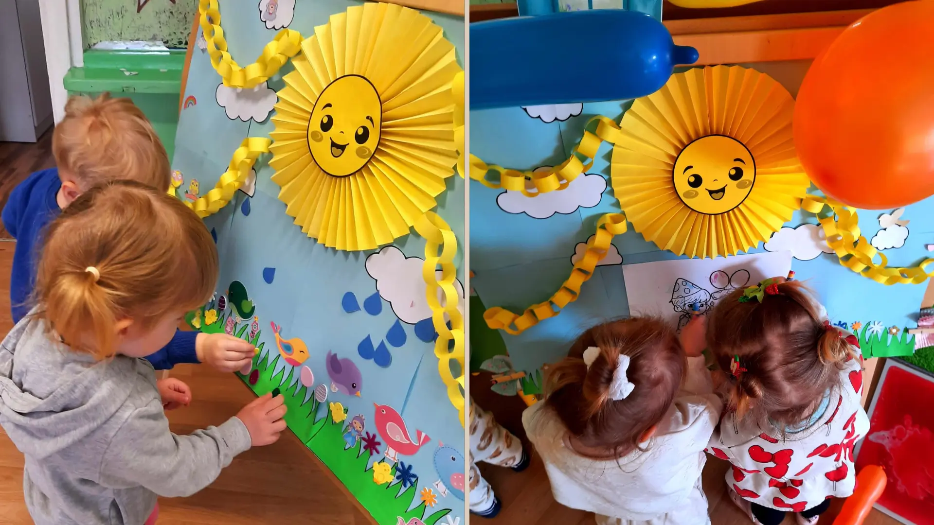 Rudenį molbertas atspindėjo rudens spalvas, gamtos reiškinius, šviesą, tamsą, šešėlius. Žiemą atsirado nauji akcentai – sniegas, šventės, žiemiški gamtos motyvai. Pavasarį molberte natūraliai išryškėjo saulės nubudimo tema, kuri vaikams padėjo dar geriau pajusti metų laikų kaitą. Vaikai stebi, kaip atsiranda vis daugiau šviesos, šilumos, spalvų ir gyvybės. Šią patirtį jie perkelia į kūrybą: atsirado saulė, debesys, pirmieji gamtos ženklai, spalvingi elementai, kuriuos vaikai patys renkasi ir kuria: klijuoja, piešia, spalvina, modeliuoja, lipdo.