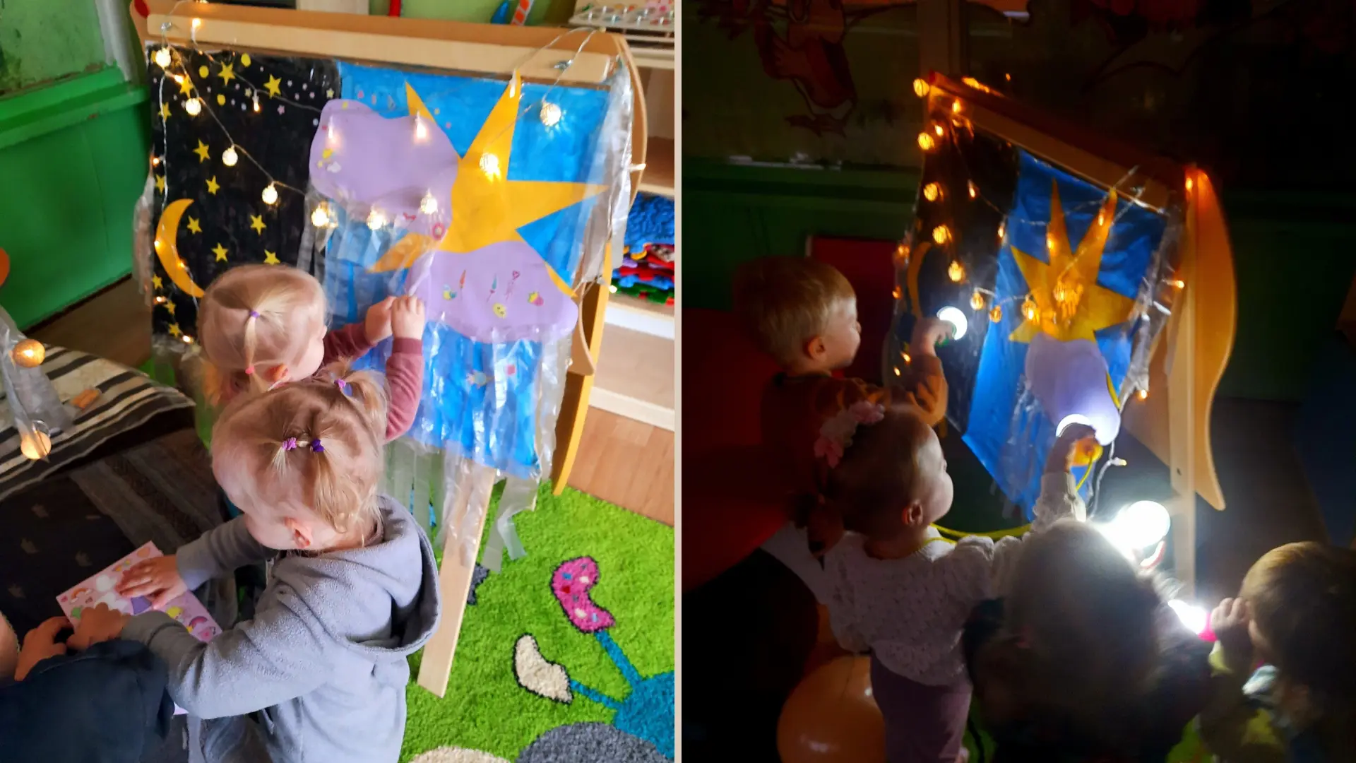 Labai svarbu, kad visa tai vyksta per žaidimą. Vaikai ne tik atlieka užduotis – jie žaidžia. Kuria ir tuo pat metu tyrinėja, improvizuoja, bando. Kūryba čia natūraliai susilieja su žaidimu, todėl veikla tampa jiems suprantama ir įdomi. Jie noriai grįžta prie šios erdvės, ją papildo, keičia, pratęsia. Tokia veikla leidžia vaikams mokytis per patirtį, išlaikant spontaniškumą ir džiaugsmą.
