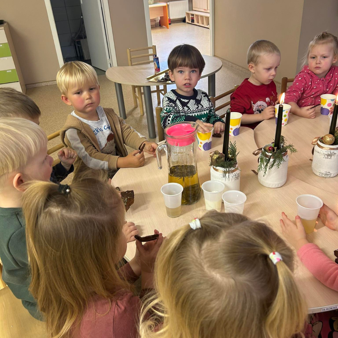 Net gerokai išaugę iš nuostabaus vaikystės pasaulio, kuriame skraido ilgakojai elniai, dovanų maišus krauna nykštukai ir paslaptingai šypsosi Kalėdų Senelis, artėjant Kalėdoms vis tiek norime tikėti pasaka. Gruodis apskritai neatsiejamas nuo vaikystės ir pasakos. Šio mėnesio įvykių verpetas įtraukia ir mažus, ir suaugusius, ir rimtuolius, ir svajotojus, todėl visa grupės bendruomenė pajautė Kalėdų laukimo džiaugsmą, patyrė daug įspūdžių ir gražių emocijų. Savo ugdytiniams norėjosi perduoti kuo daugiau jausmo, džiaugsmo, stebuklo pajautimo.