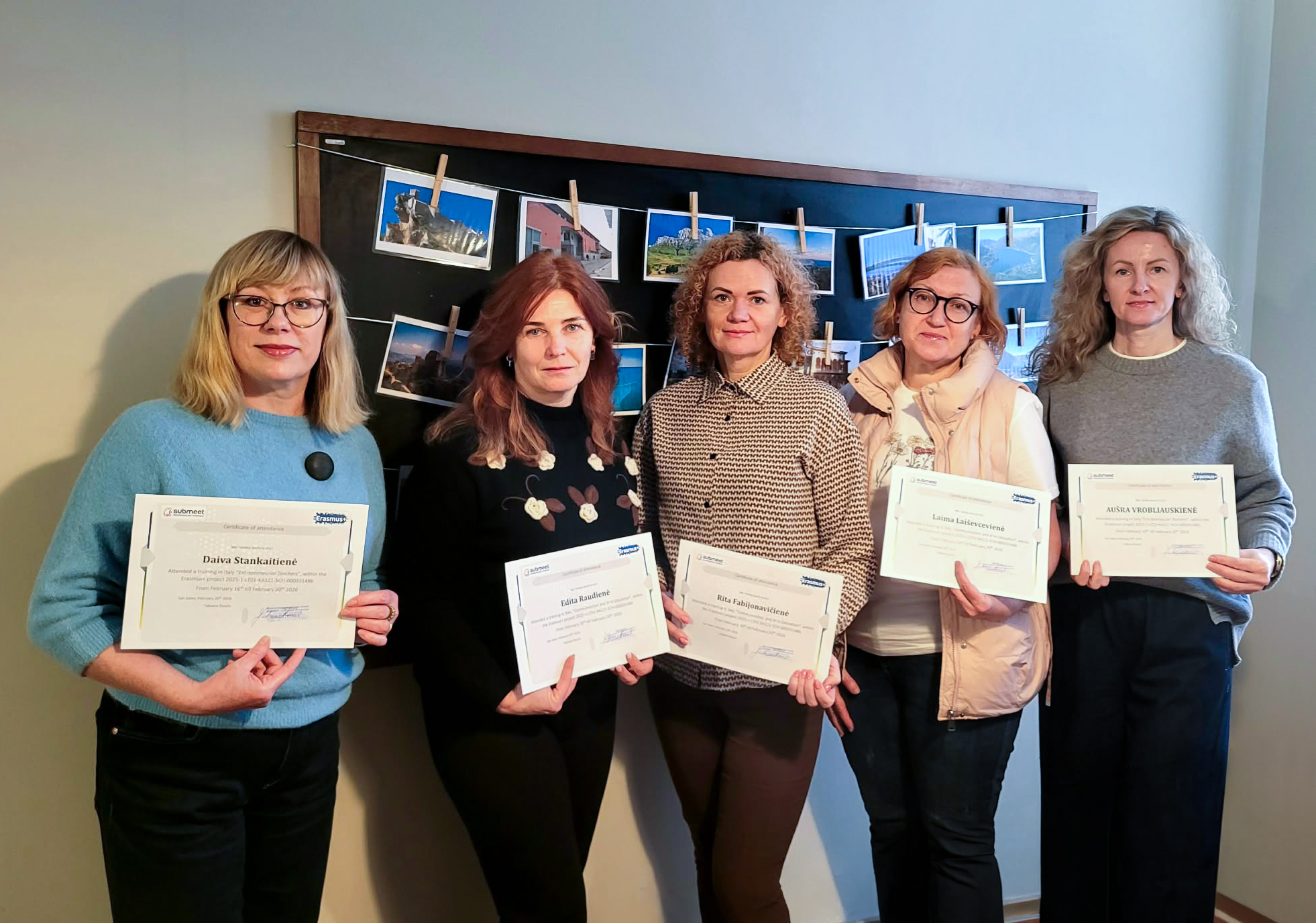 Šiaulių „Santakos“ ugdymo centro mokytojos Edita Raudienė, Daiva Stankaitienė, Laima Laiševcevienė, Rita Fabijonavičienė ir Aušra Vrobliauskienė dalyvavo kvalifikacijos tobulinimo mokymuose Italijoje, Peskaros mieste. Mokymai vyko įgyvendinant „Erasmus+“ programos projektą Nr. 2025-1-LT01-KA121-SCH-000331486.