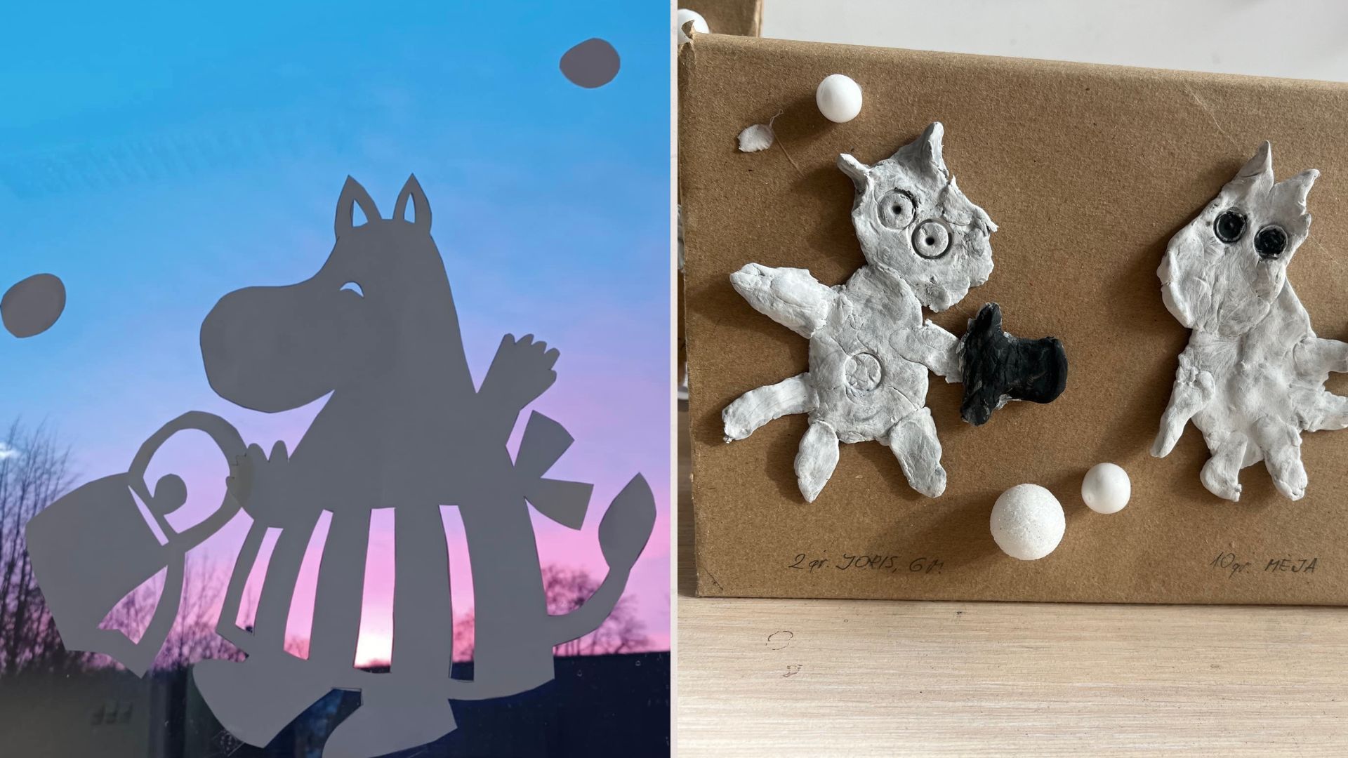 Vaikams susipažinus su knyga ir jos veikėjais, languose apsigyveno karpiniai su Muminukų siluetais ir atpažįstamais simboliais iš iliustracijų – laiškas, laivelis, Muminuko mamos rankinukas, primenantys apie Muminukų žiemojimą darželyje. Žiemiškai langus papuošę Muminukų karpiniai jau buvo puikiai pažįstami darželio vaikams, o vaizduojami simboliai priminė skaitytos istorijos detales.